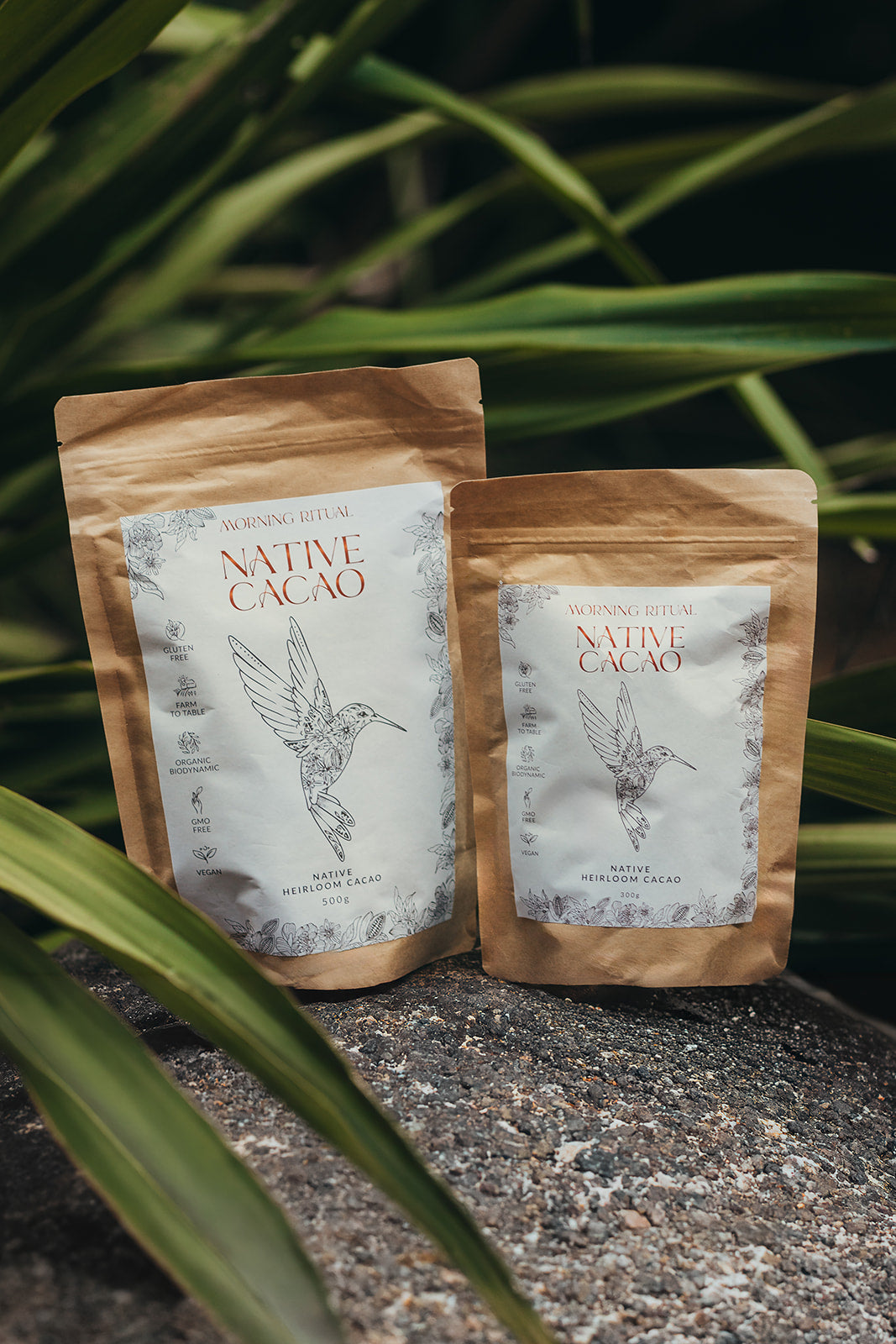 New branding: Our new branding features the beautiful hummingbird across all sizes. This is the same 100% native cacao previously called "Wild Bliss".