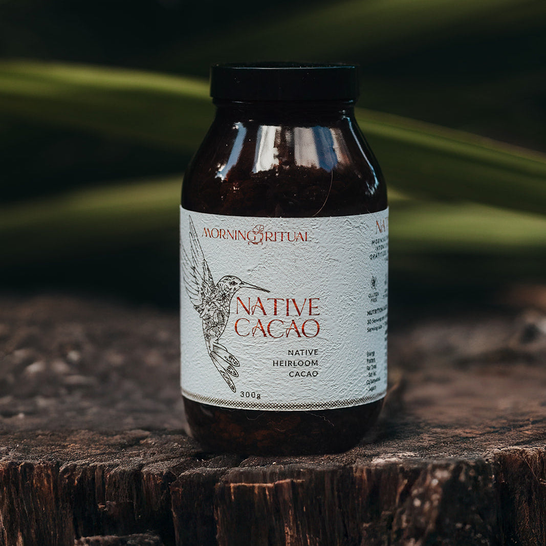For easy storage, our amber glass jars are perfect for countertops! They hold 300g of your favourite native cacao!